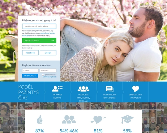 AntraPuse.lt yra vienas didžiausių rimtų pažinčių portalų Lietuvoje ir Baltijos šalyse. Svetainė siekia suburti brandžių ir sąmoningų žmonių bendruomenę, kurių tikslas yra ieškoti ilgalaikių santykių. Pagrindinė portalo vertybė - griežtas NE netikroms anketoms ir trumpalaikio bendravimo ieškotojams. Tai portalas, kuris rūpinasi tikrumu ir autentiškumu. Svetainėje registruotiems vartotojams taikoma aukšta privatumo apsauga, o jų asmeniniai duomenys yra saugūs ir niekada nebus atskleisti.
